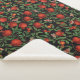 Pomegranate branches with lush leaves and rich red fruits stretch across a black background. A secondary layer subtly fades away, adding depth. Traditionally painted on paper with markers, the elements are scanned and composed into a pattern in Photoshop.