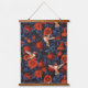 Pomegranates and hummingbirds/green leaves on blac hanging tapestry