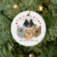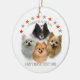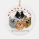 Four Pomeranian dogs posed in a Friskybiz "Can't Have Just One" Christmas ornament for the holidays.