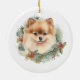 Pomeranian Christmas Wreath Festive Pup Ceramic Ornament
