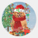 Pomeranian dog with Christmas gifts Classic Round Sticker
