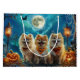 Unleash the spooky spirit with this eerie Halloween design featuring a pack of dogs under a dark, moonlit sky, surrounded by flying bats and glowing pumpkins. Perfect for those who love a touch of frightful fun with their furry friends!