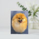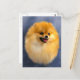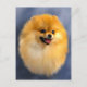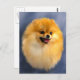 A sweet, fluffy golden colour Pomeranian is portrayed against a blue background in this original portrait.
