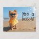 Pomeranian puppy wearing sunglasses on the beach. A fun postcard. Message "Life's a beach!" can be removed or replaced with your own message.