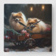 Pomeranian Snowy Sleigh Christmas Decor Square Wall Clock