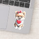 An utterly charming Valentine's Day sticker featuring an adorable Pomeranian holding a heart-shaped box adorned with a bow in her hair. This delightful sticker captures the essence of love and sweetness, making it a perfect addition to your Valentine's Day celebrations. The Pomeranian's endearing expression and the carefully detailed heart box add a touch of whimsy, making this sticker an ideal embellishment for cards, gifts, laptops, or any surface where a dose of canine charm and Valentine's Day spirit is desired. Spread love and joy with this heartwarming Pomeranian sticker, a delightful tribute to the season of affection