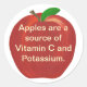 La peinture de la pomme rouge avec un surbrillance jaune et une feuille verte, avec la mention "Les pommes sont une source de vitamine C et de potassium", est imprimée sur les autocollants.