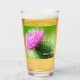 Photographie de gros plan (macro) d'un chardon pourpre, avec le toast gaélique écossais "Slàinte Mhath".
