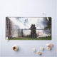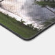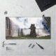 Un tapis de bureau avec une photo de pompiers combattant un incendie.