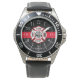 Ajoutez votre propre emblème de service d'incendie personnalisé à cette montre homme personnalisée. Choisir des montres de pompier pour les hommes et les femmes qui roulent sur la "Ligne rouge mince" Cette montre contient la croix maltaise coupe-feu sur un drapeau de pompier mince ligne rouge et fait de grands cadeaux de retraite pompier. Commandez des cadeaux de pompiers pour tous les membres de l'équipe.