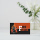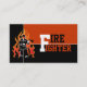 Un pompier/pompier attire l'oeil carte de visite noir rouge-orange, avec un pompier avec sa hache en flammes sur un arrière - plan noir et rouge-orange/grenadier. Une carte de profil efficace avec un look professionnel. Certains éléments sont offerts par vectorportal.com.