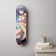 Stylish skateboard deck featuring a vibrant anime-inspecred design: a blue-haired girl in a casual summer outfit, relaxing under palm trees with a bright blue sky in the background. Parfait pour les fans de l'animation, l'amour a tropical, le beachy vibe. impression de haute qualité avec vivivid colors, making it a unique eye-catcher for any skate session