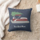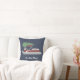 Create some custom holiday decor for your pontoon boat or home or a personalized Christmas gift for pontoon boat owners. This throw pillow features an illustration of a pontoon boat in red and white with a Christmas tree strapped to the top set against a navy blue background. It's ready to be personalized with a boat name or your recipient's name in white script lettering.