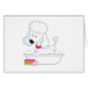 A cute poodle is getting a bath. Customize this item with a name, comment or whatever you like to make it truly unique!