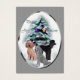 A black, a silver, and an apricot poodle are posing in front of a woodland Christmas tree. Wonderful gifts.