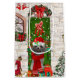 Poodle Dog Christmas sitting outside decorated home with Christmas wreath, Christmas tree is a perfect Christmas gift idea for dog lovers.