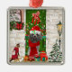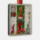 Poodle Dog Christmas sitting outside decorated home with Christmas wreath, Christmas tree is a perfect Christmas gift idea for dog lovers.