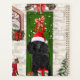 Poodle Dog Christmas sitting outside decorated home with Christmas wreath, Christmas tree is a perfect Christmas gift idea for dog lovers.