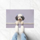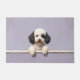 The soft lavender grey background adds a modern and sophisticated touch, perfect for welcoming entryways. Designed with extra space at the top and bottom, it allows easy personalization with names, welcome messages, or custom text—making it ideal for unique dog-themed doormats and thoughtful gifts.