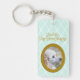 This Poodle photo keychain showcases the phrase “Forever My Best Friend” above your dog’s portrait in an antique-style frame on a soft mint diamond background.