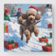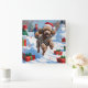 Poodle Running in Snow with Christmas Hat Square Wall Clock