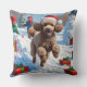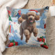 Poodle Running in Snow with Christmas Hat Throw Pillow