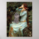 Ophelia (seated) by John W. Waterhouse (1898), adapted to include a silver miniature or toy Poodle. Waterhouse based this painting on Shakespeare's Ophelia.