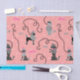 This cute French poodle tissue paper design is derived from the classic poodle skirts of the 1950s. The pretty poodle dogs are done in grey and black and have pompons of fur and stencil-style leashes. They intertwine in a repeating seamless pattern  on a vintage pink background with a light pink polka dot effect.