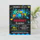 Come make a splash with this cute invitation for boys featuring Pool party splash art and some pool party equipment.