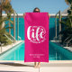 Fun for your home or a give as a gift, this hot pink beach towel features your family name, year established, and "Pool life cuz beaches be salty" in chic white lettering. MATCHING items and more colours in our collection.