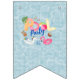 Bunting Flags for a birthday party by the pool featuring a unicorn and flamingo pool float. With our easy customization options, you can make this birthday party a unique and personalized experience for you and your loved ones. Join us for a memorable day filled with laughter, joy, and fun by the pool!