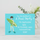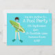 A modern fun party invitation for a pool party featuring a cute graphic of a swimming boy. The text on this invitation is fully customisable to include your own personal details. Blue and white theme