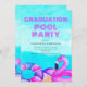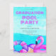 Pool party graduation invitation. Fun watercolor design with pink flamingo. Easy to change the text.