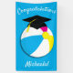 Celebrate your graduate with this cute pool party theme graduation party invitations! The pool chair has a tiny graduation robe, cap and diploma draped over it. Perfect for a high school, college or 8th grade graduation party for a summer swimming enthusiast!