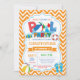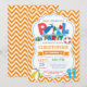 Pool Party Invitation. Summer Splish Splash. Boy Birthday Party Invite. Beach Ball. Swimming. Swimsuit. Birthday Bash. Orange Chevron. White Background. 1st First Birthday. Any Age. Printable Digital. For further customization, please click the "Customize it" button and use our design tool to modify this template.