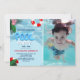 Do you like swimming parties? This summer swimming pool party invitation with its crystal-clear blue water, soft waves invite you to swim or swim to refresh yourself. The design features a vertical photo and is decorated with tropical green foliage leaves, a bright tropical pink flower, and traditional inflatable rings. Its modern template includes a fun title of "POOL PARTY" and is created with a navy blue and white font. All text is easily customized and has matching elements.