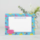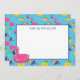 These flat panel thank you cards are perfect for pool party birthdays. They feature a pattern of brightly coloured pool floats or pool tubes in the shape of a flamingo, a pineapple and a popsicle against a bright blue background. Use the template field to personalized the text at the top of the card.