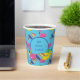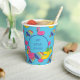 These paper cups are perfect for throwing a pool party celebration. They feature a pattern of brightly coloured pool floats or pool tubes in the shape of a flamingo, a pineapple and a popsicle against a bright blue background. Use the template field to easily add your message to these pool party supplies.