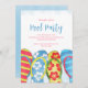 This design features a pool party invitation, with a summer, trendy, cool, cute, beach, tropical theme, perfect for swimming, and swim parties with cute flip flops.