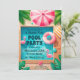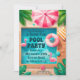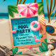 Dive into fun with this vibrant cool pool party design, featuring a refreshing swimming theme with bright blue water and playful elements. Perfect for celebrating any child’s special day, this customizable piece brings a lively and splashy vibe to the party. With its energetic style, it’s ideal for an unforgettable poolside celebration. Includes space for your event details and RSVP info. Personalize it to create a refreshing keepsake for your little one and guests!