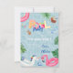 Thank you card for a birthday party by the pool featuring a unicorn and flamingo pool float. These enchanting pool party thank-you cards are the perfect finishing touch to your party favours. Set the stage for an unforgettable pool party experience! Most lettering is editable - click the "Customize Further" button to edit. There are matching items in our store.
