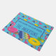 Welcome guests to your pool or home with this fun door mat featuring a pattern of brightly coloured pool floats or pool tubes in the shape of a flamingo, a pineapple and a popsicle against a bright blue background. Use the template field to easily add your name to this pool party themed doormat.