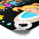 Cute party sign for children featuring Pool party splash art, blonde girl and some pool party equipment.