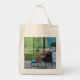 The printing came out very well, better than I had anticipated. The natural color fabric is sturdy with strong seams and comfortable handles. This tote fits easily over my shoulder. As it is filled, the bottom flattens out--very cool! I would buy this product again. This grocery tote holds a lot of groceries! The image quality was very good. The colors were a little darker than I had expected. The darkness may have been due to printing on a natural color fabric rather than on white. The cat design is attractively centered on the tote. The spirit of the design is very lively, just as it appears on the Zazzle website.