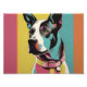 Eye-Catching Design: A striking pop art-style dog photo presented in a trendy colour block format.
