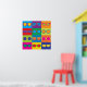 Pop-Art styled illustration of popular eyeglass frame styles in a colourful chequerboard.