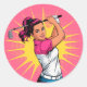 Pop Art Girl Golfer Birthday Party Classic Round Sticker