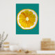 A cute and colourful vibrant yellow lemon fruit slice from an original painting by artist Sacha Grossel. This large pop art style fruit is yellow and very bright and colourful against a customisable blue teal coloured background. Quirky and original.