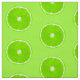 Fabric patterned in a pop art rendition of juicy lime slices with a light lime green background - simple, fruity refreshment
