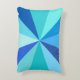 This hip, retro 60s-inspired pop art rectangular toss pillow has psychedelic blue rays / sunbursts shooting out in a geometric pattern. Both sides of this funky, minimalist, ultra-mod pillow design has twelve rays in varying shades of bright blue, from neon to light and dark. It's groovy, baby.